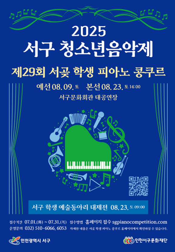 서구문화재단 관계자는 "오랜 역사를 지닌 서곶 학생 피아노 콩쿠르가 올해는 청소년 예술동아리 대제전을 더해 더욱 의미 있는 종합 음악 축제로 발전했다"며, "지역 청소년들이 예술적 역량을 마음껏 발휘하고 지역사회와 함께 성장하는 특별한 기회가 될 것"이라고 말했다.