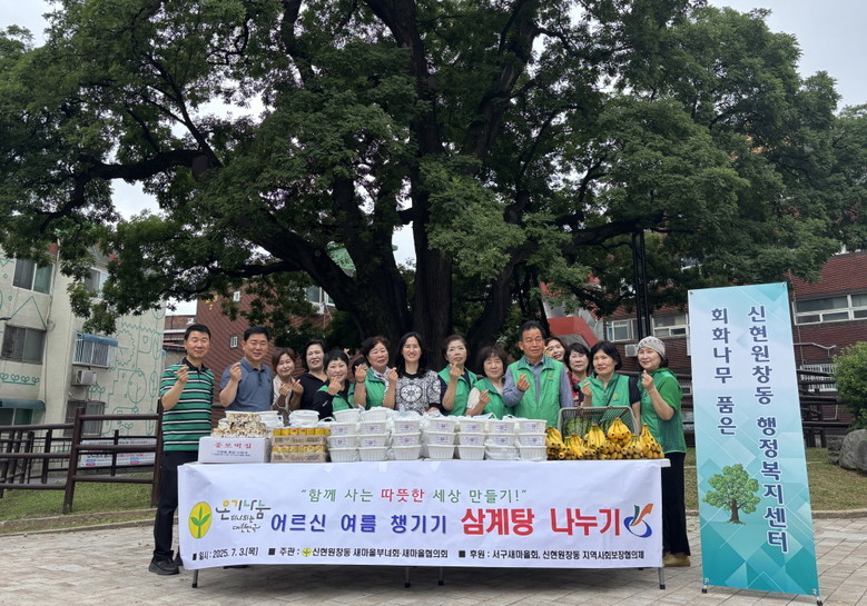 김재규 신현원창동장은 “삼계탕 나눔행사를 위해 애써주신 새마을부녀회와 새마을협의회를 비롯한 자생단체원들의 노고에 감사드리며, 폭염과 호우 피해없이 모두 건강한 여름을 나시기 바란다”고 전했다.