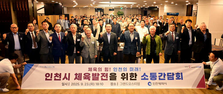 [인천 세계타임즈=심하린 기자] 인천광역시(시장 유정복)는 9월 23일(화) 인천시 체육회장, 군·구 체육회장, 인천시 체육회 종목별 단체회장, 원로 체육인 등 100여 명이 참석해 체육 발전을 위한 소통간담회를 개최했다고 밝혔다.