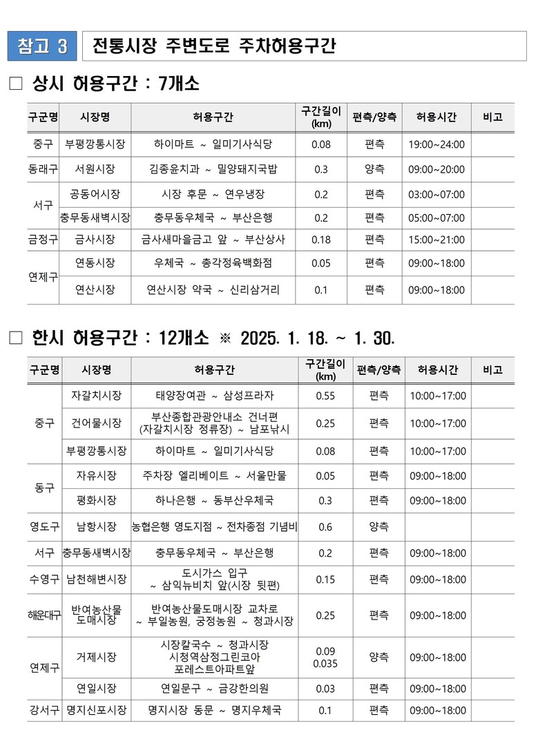 ◈ 1.18.~1.30. 전통시장 주변 도로 19개 구간 주·정차 허용… 전통시장 방문 편의 증대 [부산 세계타임즈=이용우 기자] 부산시(시장 박형준)는 설 명절을 맞아 전통시장 소비 촉진을 위한 특별 사은·할인 행사가 열린다고 밝혔다.
