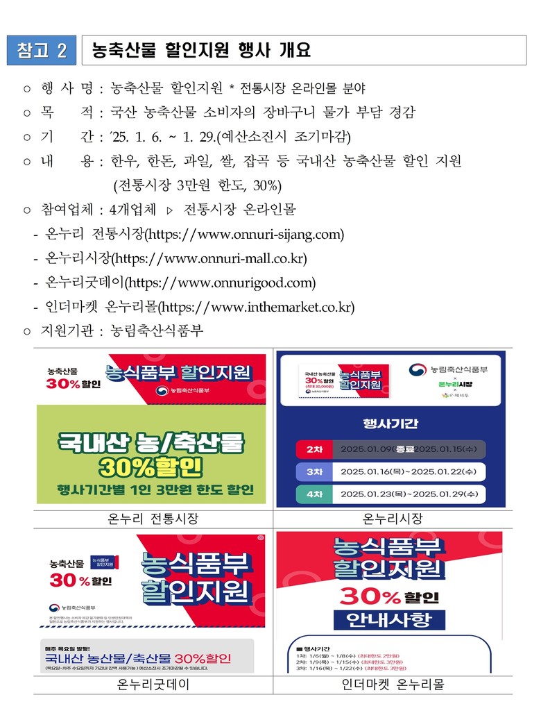 * 농림축산식품부 '농축산물 할인지원'(ʹ25.1.6 ~ 1.29)