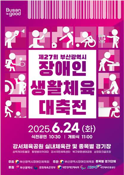 ◈ 박형준 시장, “장애인의 생활체육 참여 확대를 통한 '생활체육 천국도시 부산'으로 거듭나기 위해 시민 여러분들의 많은 관심을 부탁드린다”라고 밝힐 예정 [부산 세계타임즈=이용우 기자] 부산시(시장 박형준)는 오늘(24일)부터 30일까지 7일간 강서체육공원, 사직 론볼경기장 등 6곳의 경기장에서 「제27회 부산광역시 장애인생활체육대축전(이하 대회)」이 개최된다고 밝혔다.