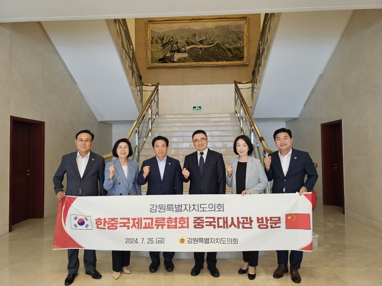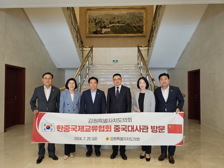 [강원도 세계타임즈=김민석 기자] 강원특별자치도의회 한중국제교류협회(회장: 원제용(원주6))는 7월 26일 주한중국대사관을 방문하여 팡쿤(方坤)) 주한중국대리대사와 면담을 갖고 강원특별자치도의회와 중국지방의회와의 국제교류 활성화를 위한 중국정부의 적극적인 협조를 요청했다.