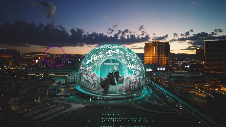 하나금융그룹은 4월 29일 오전 10시(미국 현지시각 기준, 4월 28일 오후 6시) 미국 라스베이거스에 위치한 세계 최대 규모의 몰입형 LED 돔 ‘스피어(Sphere)’에서 세계 금융권 최초이자, K-POP 아티스트 최초의 광고 캠페인을 온에어(ON-AIR) 한다. 이번 광고 캠페인은 1분 11초 영상을 로테이션 방식으로 지속 송출될 예정이다.
