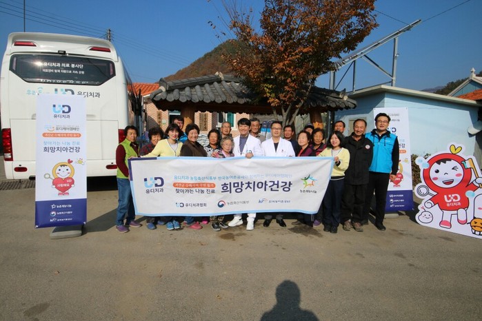 유디치과는 지난 11월 3~4일 2일 간, 충북 괴산군 청천면 고성리, 신도2리 주민 170여 명을 대상으로 ‘찾아가는 나눔진료 희망치아건강’ 행사를 진행했다. 이번 행사는 지난 3월, 유디치과와 사회공헌 협약을 맺은 농림축산식품부와 한국농어촌공사가 공동으로 진행했다.