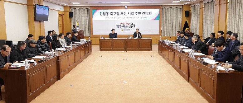 [대전 세계타임즈=이채봉 기자] 대전시의회는 19일 시의회 소통실에서 ‘판암동 축구장 조성 사업 주민 간담회’를 개최했다.