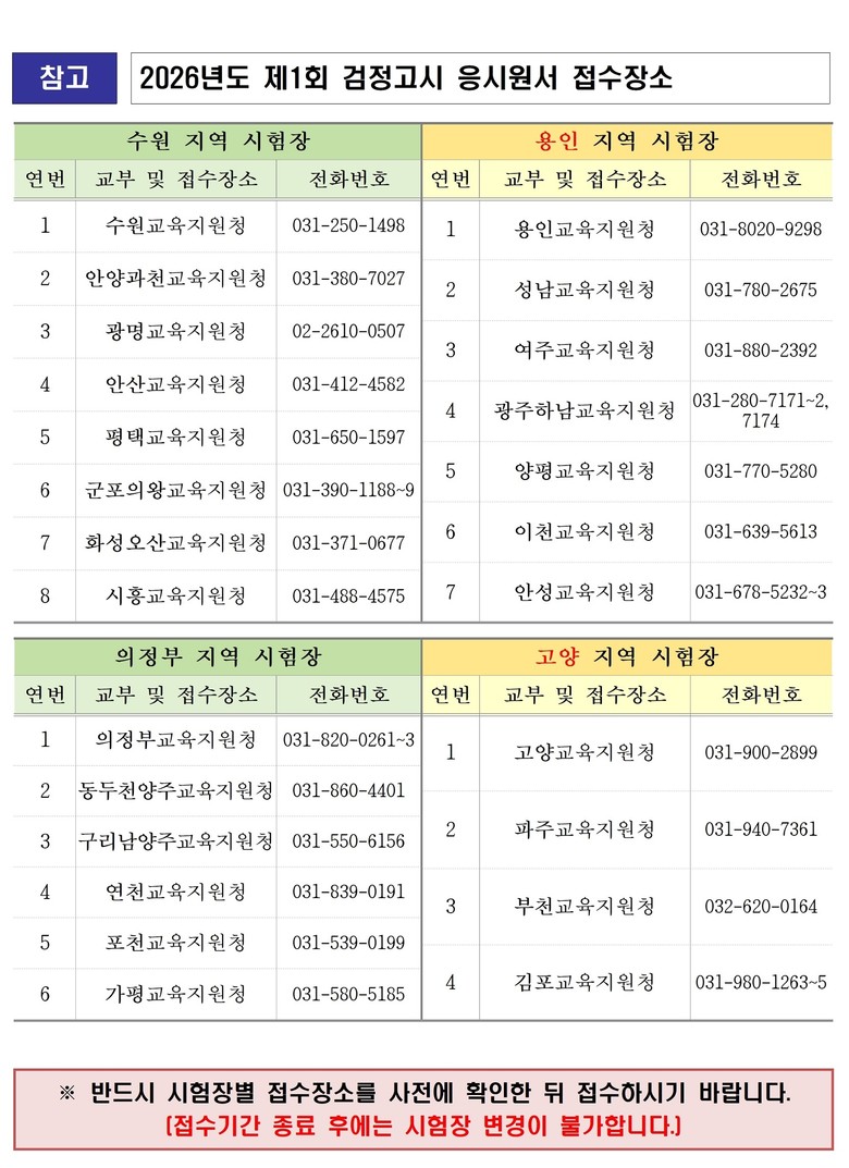 한편 검정고시 관련 자세한 사항은 경기도교육청 검정고시관리실(☎031-820-0888)로 문의하면 된다.