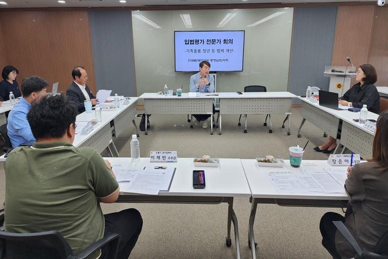 [충남 세계타임즈=백택기 기자] 충남도의회(조길연 의장)는 29일 도의회 세미나실에서 ‘입법평가를 통한 가족돌봄 청년 관련 법제 개선방안 모색’을 주제로 한국법제연구원과 공동으로 전문가 회의를 개최했다.