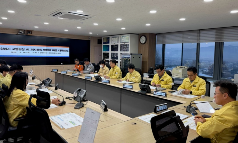 시는 16일, 남상은 부시장 주재로 재난상황실에서 긴급 회의를 열고 ‘안성시 고병원성AI 재발방지 대책’에 대해 집중 논의했으며, 산란계와 오리 등 취약 축종 농가가 밀집한 7개 읍·면을 중심으로 방역 활동을 한층 강화하도록 지시했다.