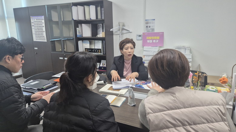 [경기도 세계타임즈=송민수 기자] 경기도의회 정경자 의원(국민의힘)이 지난 달 18일 열린 ‘경기 동북부 공공병원 설립 타당성 및 민간투자 적격성 조사’ 중간보고회에서 사업 추진 현황과 조사 결과를 청취한 데 이어, 5일(금) 보건건강국 의료자원과장을 비롯한 실무진과 별도 정책 협의를 진행하며 공공병원 설립 방안을 심층 검토했다.