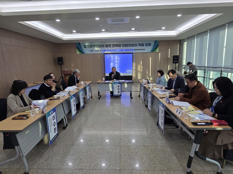좌장을 맡은 유인호 부의장은 “충청광역연합이 출범 1주년을 앞두고 제도적 기반과 인력·재정 여건을 강화해야 지속 가능한 연합으로 발전할 수 있다”며 “충청권 4개 시·도가 체감할 수 있는 협력 효과를 위해서는 중앙정부의 재정 지원과 법·제도적 뒷받침이 절실하다”고 밝혔다. 이어 “충청광역연합의회가 지방분권시대의 선도적 협치 모델로 자리 잡길 기대한다”고 덧붙였다.