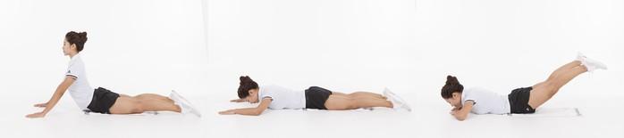 추천할 만한 스트레칭법으로는 ‘시소 스트레칭’이 있다. 시소 스트레칭은 전신을 이완하고 척추와 어깨관절을 교정하는데 도움을 준다. 우선 엎드려 누워 양손을 모아 이마 아래에 둔다. 양팔로 바닥을 누르며 천천히 상체를 들어올린다. 자세를 4초간 유지하고 제자리로 돌아온다. 이후 복근에 힘을 줘 두 다리를 들어올려 4초간 유지한다. 이때 무릎이 구부러지지 않도록 주의한다. 같은 동작을 1세트로 5회 반복한다.
