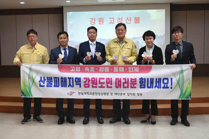 한림대학교춘천성심병원 교직원들은 강원도 산불 피해 주민들의 긴급 구호와 피해 복구를 돕고자 지난달 ‘We路(위로)캠페인’을 열고 성금 모금활동을 해왔다. 학교법인 일송학원 재단 교직원들도 이에 동참해 총 1000만원의 성금을 모았다.