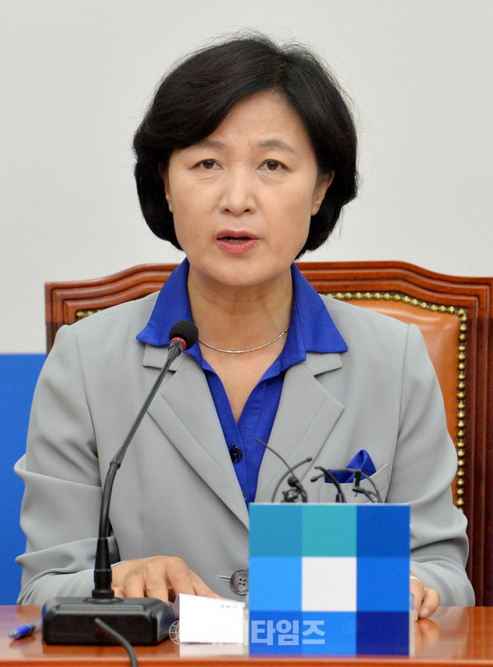 15일 오전 서울 여의도 국회 더불어민주당 대표 회의실에서 열린 긴급 중진의원 간담회에 참석한 추미애 대표가 모두발언하고 있다. 추 대표는 강경화 외교부 장관 후보자의 인사청문보고서가 채택되지 않았다며 청문회가 자질과 능력의 검증이 아니라 의혹 부풀리기와 발목잡기로 전락해버려서 안타까운 마음 금할 수 없다고 말했다. 2017.06.15.