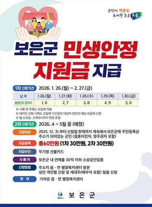 자세한 신청 방법은 관할 읍면동 행정복지센터로 문의하면 된다.