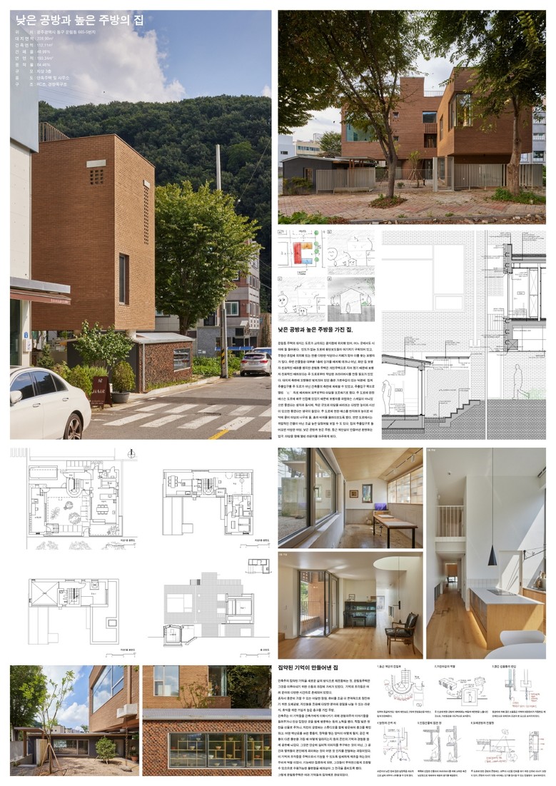 주거부문 최우수작으로 뽑힌 동구 운림동 ‘낮은 공방과 높은 주방의 집’은 대지가 협소하지만 젊은 건축가의 도전과 고민이 작품에 녹아들어 다양한 높이의 시선을 제공하는 설계기법이 호평을 받았다.