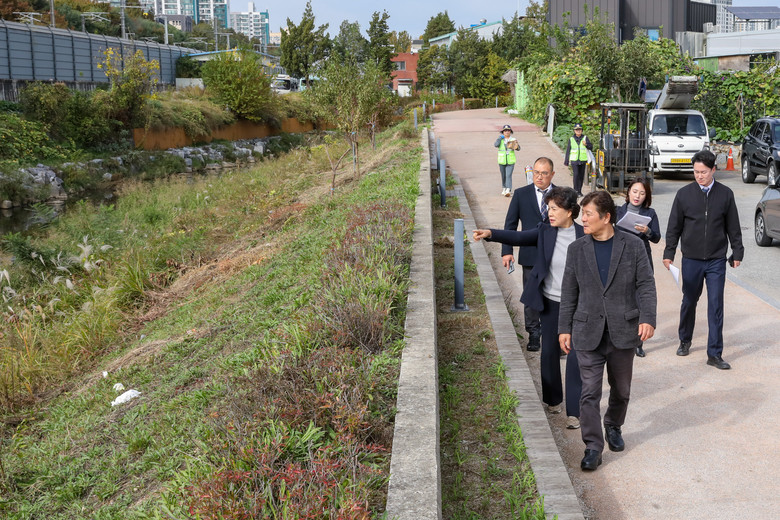 이날 답사에는 이상호 대표 의원을 비롯해 황순남⋅여재만⋅정춘지 의원과 리더스클럽 손수조 대표가 참여해, 하천 복원 사업의 성과와 관리 방식을 직접 확인했다.
