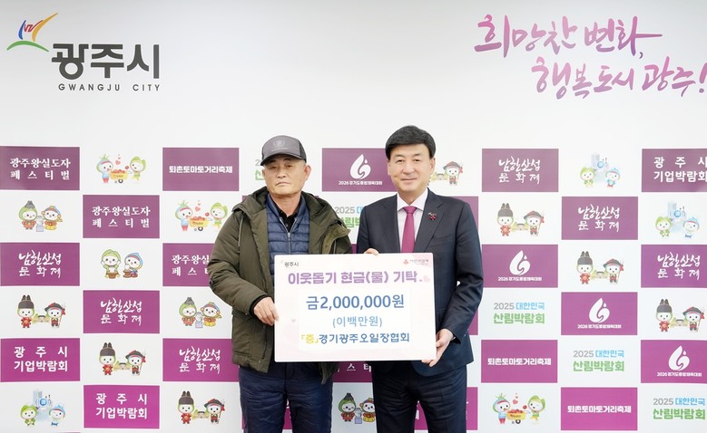 같은 날 경기광주오일장협회도 지역사회 취약계층 지원을 위해 성금 200만 원을 기탁했다. 성기현 회장은 “적은 금액이지만 이웃들이 추운 겨울 따뜻함을 느끼길 바란다”며 “앞으로도 지역을 위한 지속적인 나눔 활동을 이어가겠다”고 말했다.