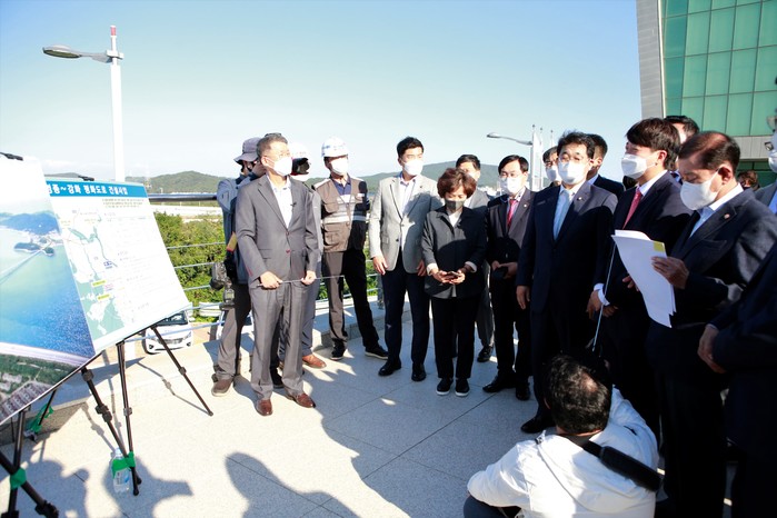 국민의힘 인천시당 위원장인 인천 중구옹진군강화군이 지역구인 배준 국회의원과 유천호 강화군수도 이날 현장을 찾아 정부가 서해 남북평화도로 전 구간에 대한 예비타당성 조사를 면제해야 한다고 건의했다.