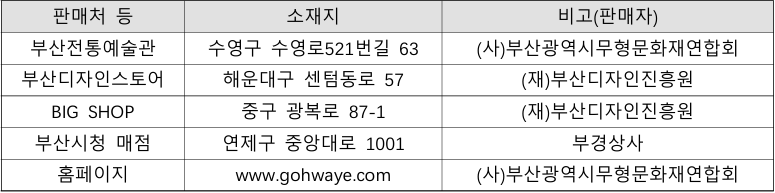 상품에 대한 자세한 정보는 「고와예(古와藝)」 공식 누리집(gohwaye.com)을 참고하거나 부산전통예술관(☎ 051-758-2530)으로 전화 문의하면 된다.