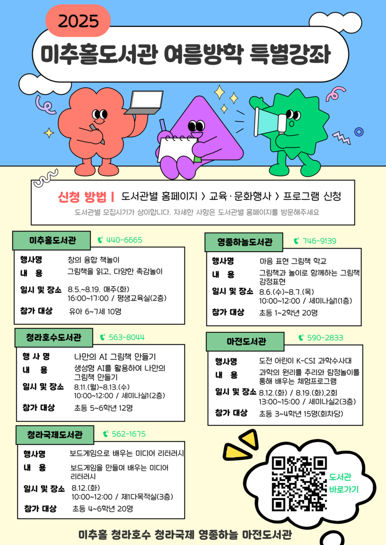 각 프로그램의 세부 일정 및 접수 방법은 미추홀도서관 누리집(https://www.michuhollib.go.kr/)에서 확인할 수 있다.