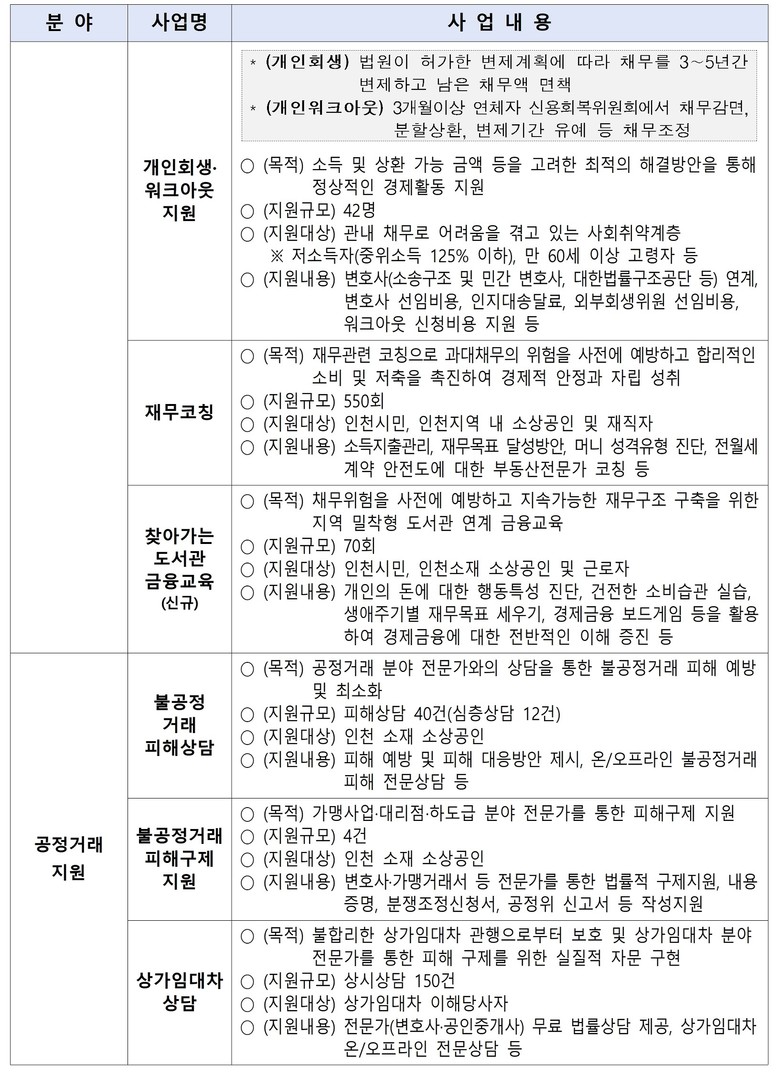 한편 금융소외계층을 위해 채무 상담과 개인파산·면책, 개인회생·워크아웃 등을 지원해 채무 문제 해결을 돕고, 재무 코칭과 금융 교육을 병행해 재무 자립을 지원한다.