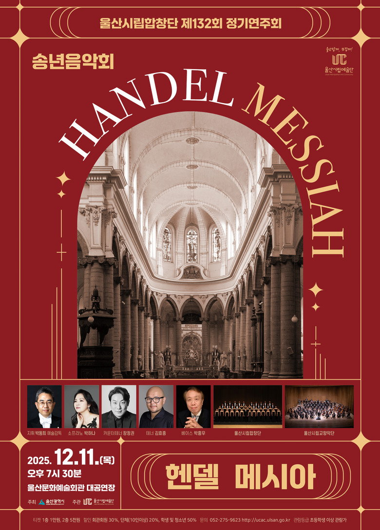 올해의 대미를 장식할 이번 무대는 바로크 음악의 걸작으로 손꼽히는 게오르크 프리드리히 헨델의 대표 오라토리오 ‘메시아’를 통해 시민들에게 깊은 감동과 성찰의 시간을 선사할 예정이다.