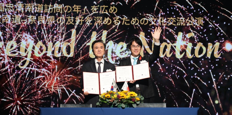 도와 나라현은 24일 저녁 나라현 ‘나라 100년 회관’ 등에서 ‘비욘드 더 네이션(Beyound the Nation)’ 문화교류 공연을 개최했다.