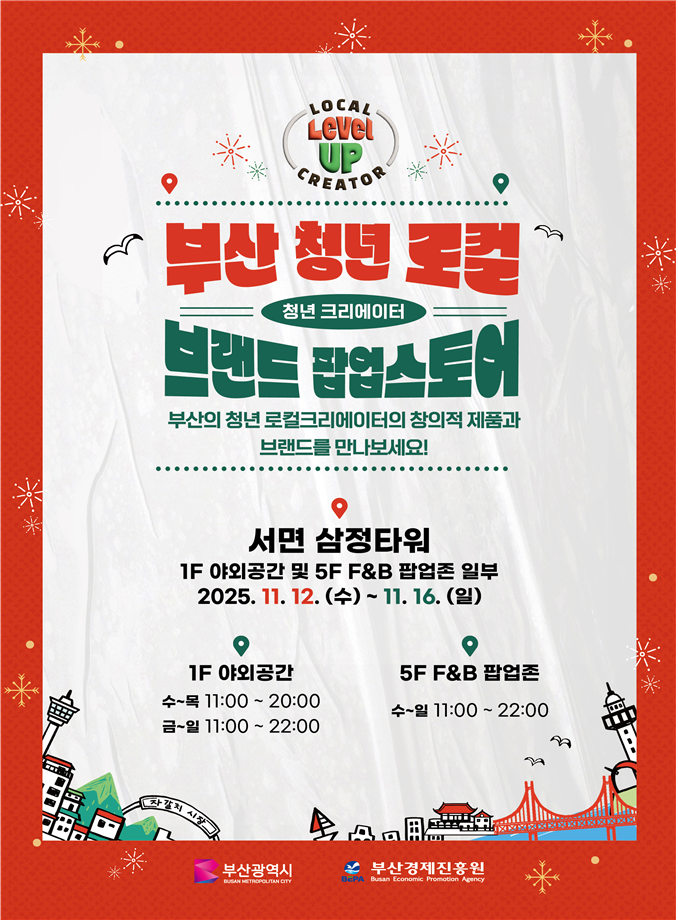 ◈ 부산의 개성 있는 지역(로컬) 브랜드의 매력을 알려 시민들의 인지도와 관심 확대 기대 [부산 세계타임즈=이용우 기자] 부산시(시장 박형준)와 부산경제진흥원(원장 송복철)은 오늘(12일)부터 16일까지 5일간 서면 삼정타워에서 '2025 부산 청년 로컬 브랜드 팝업스토어'를 개최한다고 밝혔다.