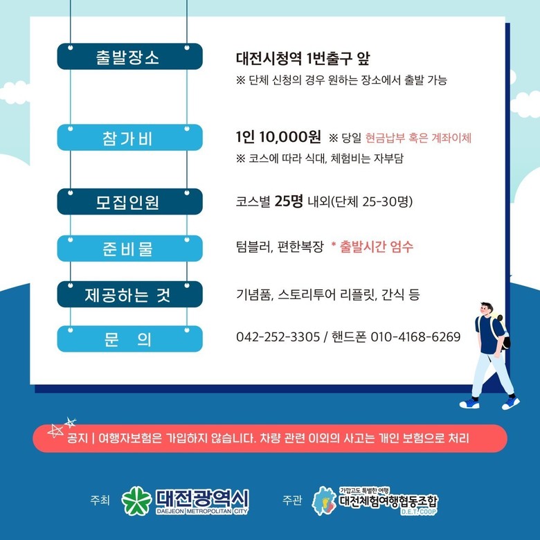 참가 신청은 온라인 및 전화(☎042-252-3305)로 가능하며, 세부 일정과 코스 정보는 대전스토리투어 공식 예약 채널에서 확인할 수 있다.