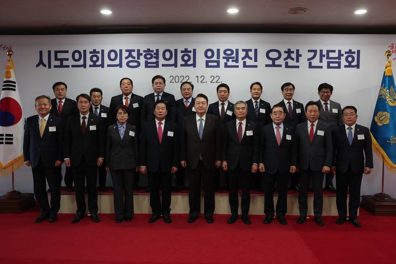 이날 간담회에는 대한민국시도의회의장협의회(이하 의장협의회) 임원진과 윤석열 대통령을 비롯해 이상민 행정안전부 장관, 이진복 정무수석, 서승우 자치행정비서관 등이 자리했다.