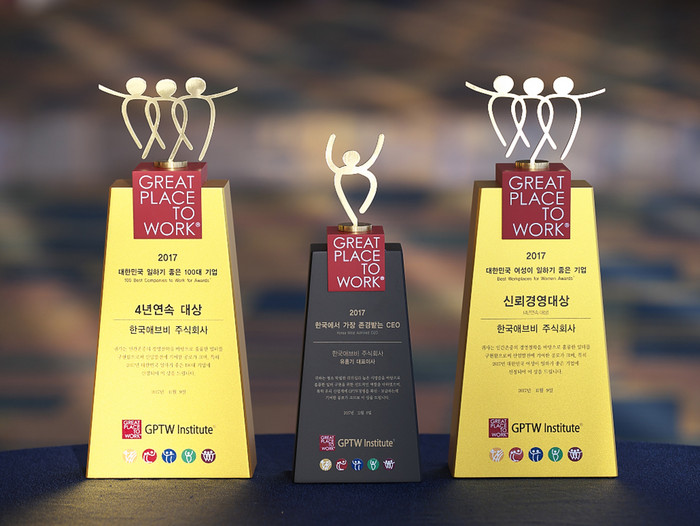 이로써 애브비는 5년 연속 대한민국 일하기 좋은 일터 및 4년 연속 여성이 일하기 좋은 기업으로 선정돼, 제약 기업 중 유일하게 4회 연속 두 가지 부문 모두 대상을 수상했다.