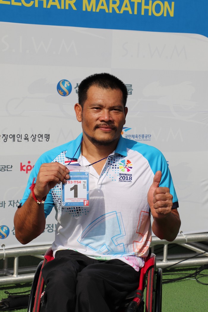 타나 라왓은 이날 1시간 23분 41초로 42.195km 풀코스 마라톤 결승선을 가장 먼저 통과했다. 그는 "2년 연속 우승을 하게 돼 기쁘다"며 "장애인 아시안 게임 등 향후 대회에서도 좋은 성적을 얻고 싶다“고 우승 소감을 밝혔다.