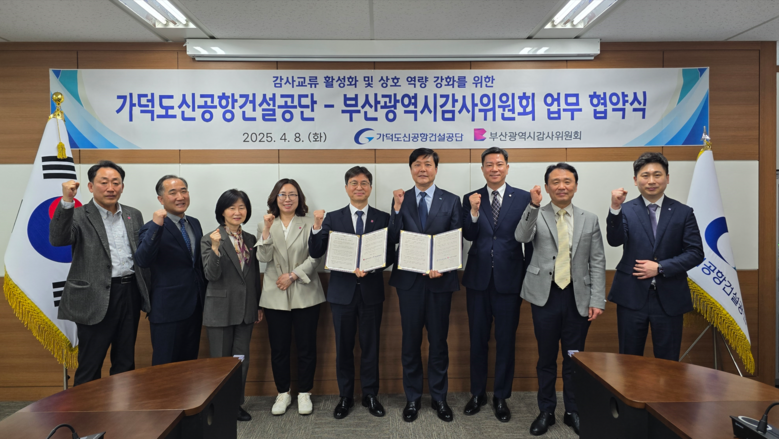 협약식에는 윤희연 시 감사위원장과 신영일 가덕도신공항건설공단 상임감사가 참석해 협약서에 서명했다.