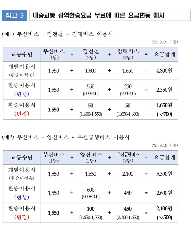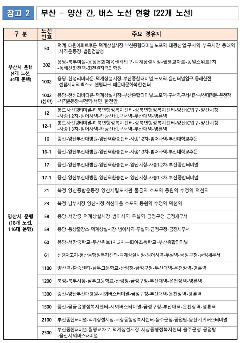 시는 내년(2026년) 개통 예정인 양산선(노포-양산중앙) 도시철도와 부산 대중교통(버스, 도시철도) 간 환승 시에도 동일하게 광역무료환승을 적용할 예정이다.