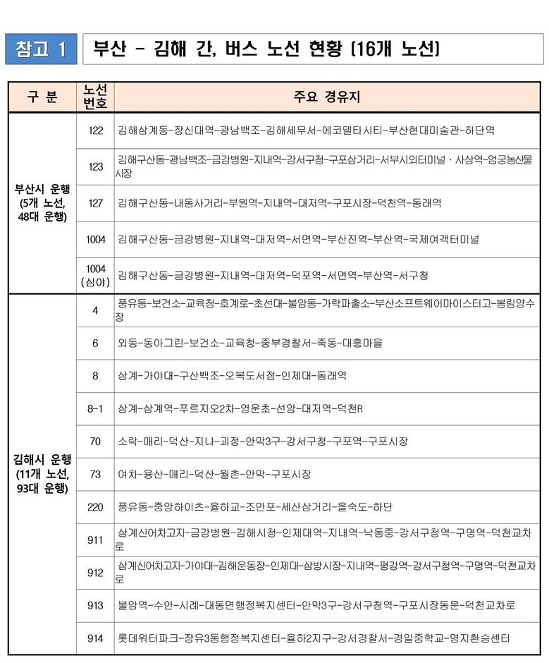 한편, 부산과 김해, 양산을 오가는 대중교통은 경전철을 비롯해, 38개 노선에 290여 대의 버스가 운행 중이다.