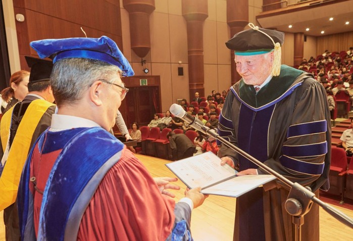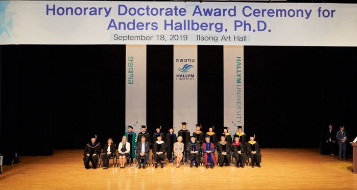 이번 학위수여식은 한림대학교 윤대원 이사장, 김중수 총장 등이 참석한 가운데 안데스 할베리 명예박사의 업적을 되짚고 한림대학교 학위의 의미를 새기는 식순으로 진행됐다.