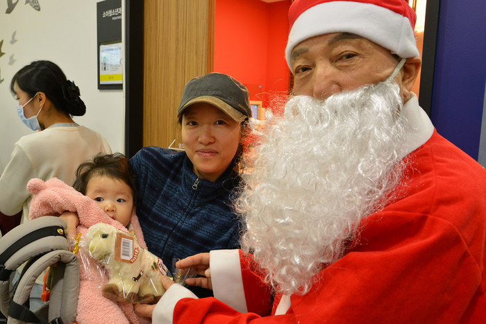 19일 서울 관악구 소재 종합병원, 에이치플러스 양지병원이 개최한 ‘해피크리스마스 축제’에서 이 병원 김철수 이사장이 산타클로스 복장을 하고 소아병동과 소아청소년과 어린이들에게 쿠키와 인형 등 X-마스 선물을 나눠주며 따뜻한 마음을 전했다.
