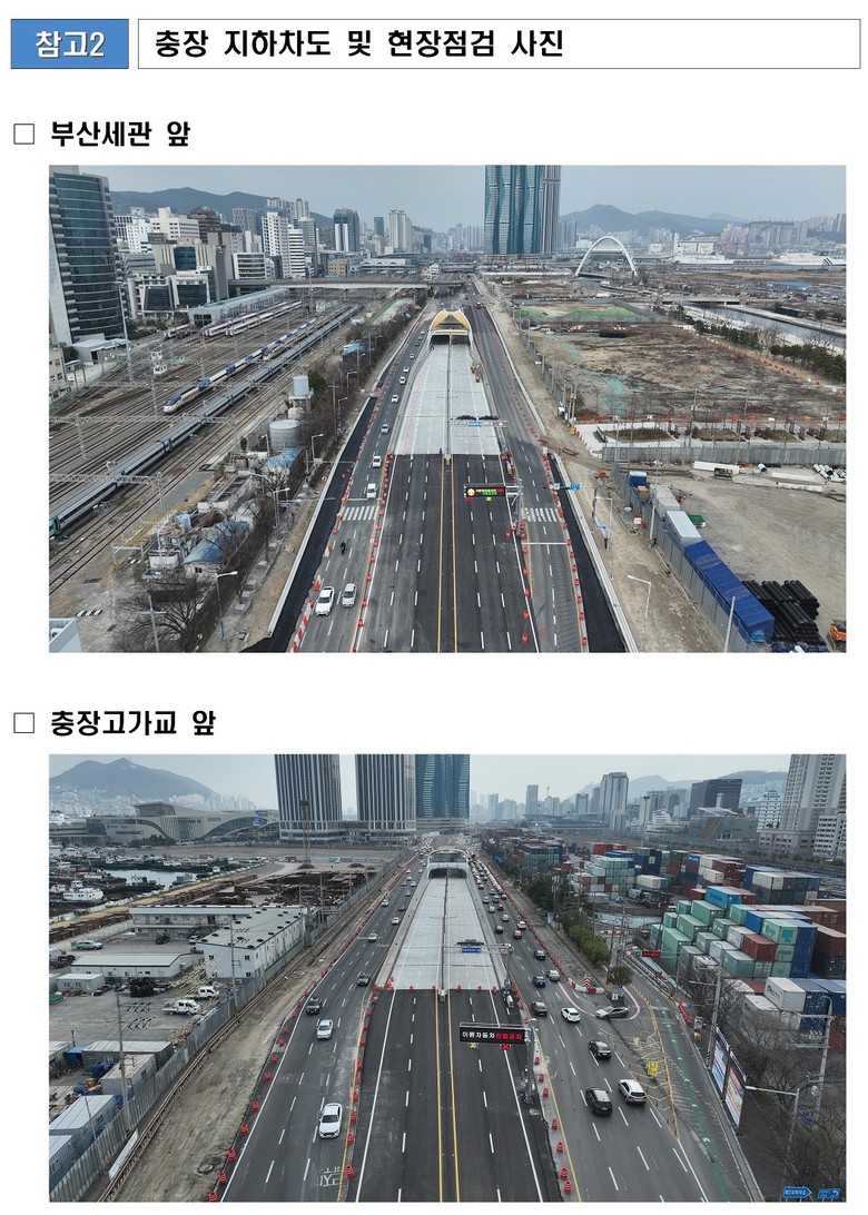 박형준 시장은 “이번 충장지하차도 개통은 시민 불편 해소를 위해 부산시 및 관계기관, 해양수산부 담당자들의 치열한 협의와 노력의 결실”이라며, “개통 후 안전 및 상부도로(충장대로) 공사 준공까지 도로관리청으로서 최선을 다하겠다”라고 전했다.