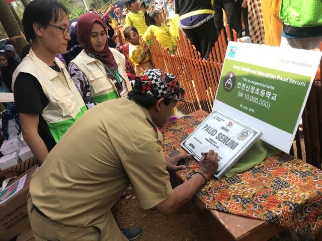 [인천=세계타임즈 심동윤 기자] 국제구호개발 NGO 굿네이버스 인천본부(본부장 김기영)는 인천신정초등학교(교장 김성렬)과 함께 7월 28일(토) 인도네시아 보고르(Bogor) 지역에 위치한 찍럭사(Cileuksa) 마을에서 아동교육센터 건축 준공식을 가졌다.