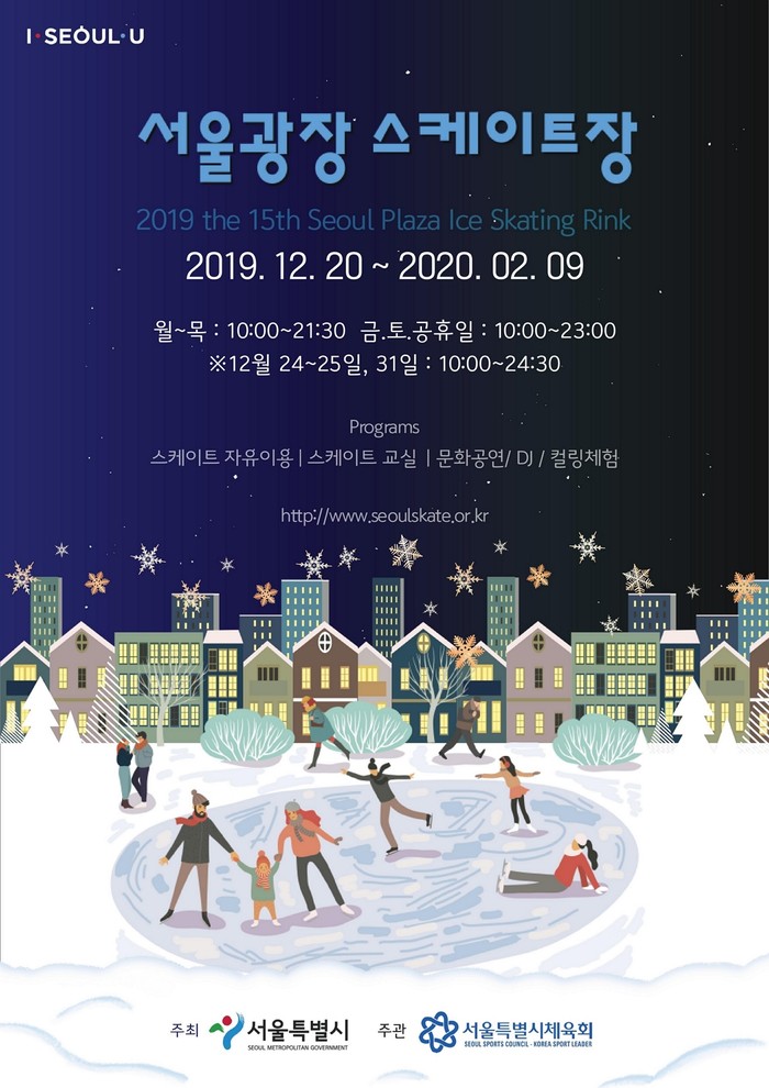 이와 함께 서울광장 스케트장은 20일 개장을 기념해 저녁 6시 30분부터 레이저쇼를 비롯한 피겨스케이팅 공연과 DJ 퍼포먼스 등 다채로운 문화행사를 개최한다.