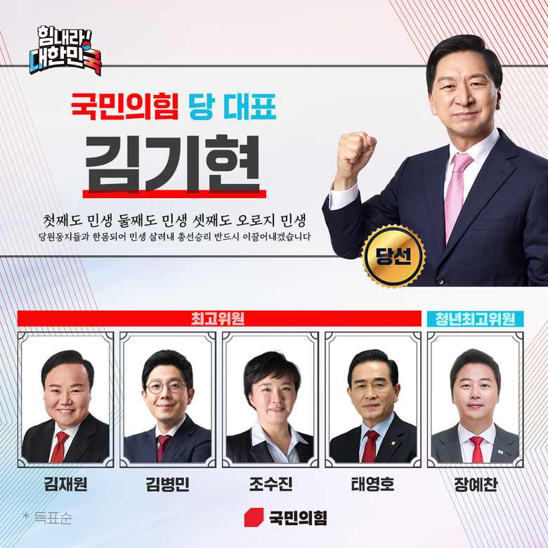 한편 최고위원에는 김재원, 김병민, 조수진, 태영호 후보가 선출됐다. 청년 최고위원에는 장예찬 후보가 선출됐다.