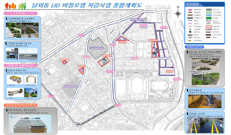저영향개발(LID) 비점오염 저감사업은 도시화에 따른 불투수면적의 증가에 대해 빗물을 직접 유출시키지 않고 땅으로 침투·여과·저류하도록 해 하천의 수질개선 및 가뭄‧홍수 등에도 대응하도록 하는 사업이다.
