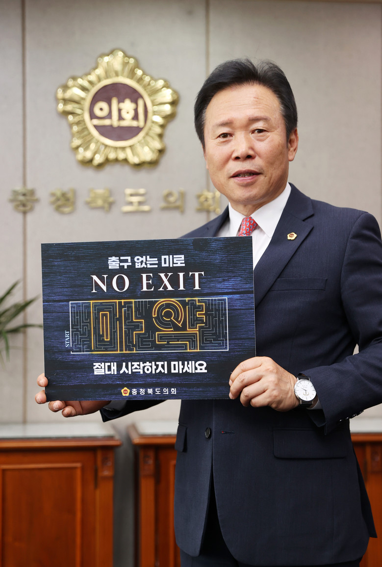 [충북 세계타임즈=이현진 기자] 충북도의회 황영호 의장은 4일 집무실에서 마약중독의 위험성을 환기하고, 경각심을 고취하기 위하여 ‘NO EXIT’ 릴레이 캠페인에 참여했다.