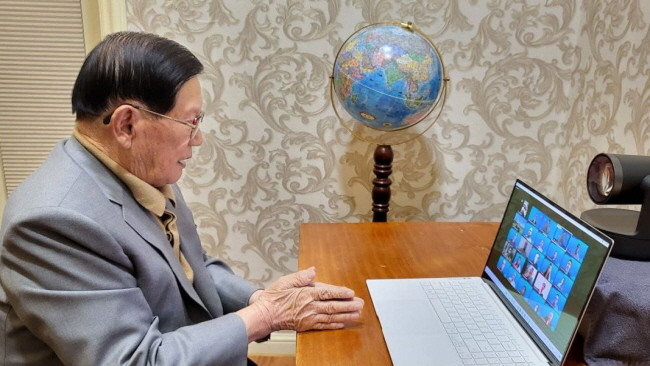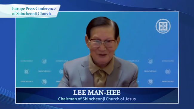 (사진=18일 열린 신천지 온라인 세미나 관련 유럽 화상 기자회견에 참여한 이만희 총회장)