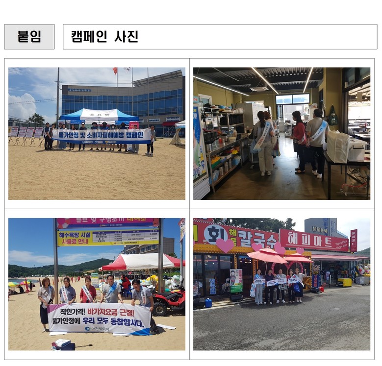 김진태 시 경제산업본부장은 “여름휴가철 피서지에서의 공정한 가격 문화 정착을 위해 지속적으로 점검을 이어갈 것”이라며, “상인 여러분의 자발적인 노력과 적극적인 동참을 당부드린다”라고 말했다.