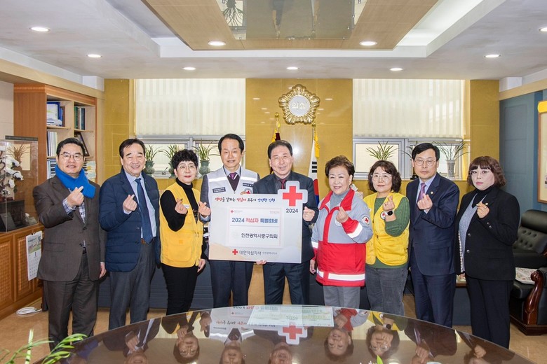 [중구 세계타임즈=심하린 기자] 인천광역시 중구의회(의장 강후공)는 지난 14일, 구의회에서 대한적십자사 인천광역지사에 적십자 특별회비를 전달했다고 밝혔다.