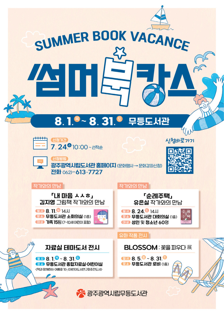 송경희 광주시립도서관장은 “이번 ‘썸머 북캉스’는 여름에 책과 함께 보내는 휴가라는 뜻으로 많은 시민이 도서관에서 책과 함께 즐기는 휴가를 보내면 좋겠다”며 “앞으로도 도서관이 시민에게 책과 문화로 가득한 놀이터가 되고, 몸과 마음을 재충전하는 곳이 되도록 노력하겠다”고 말했다.