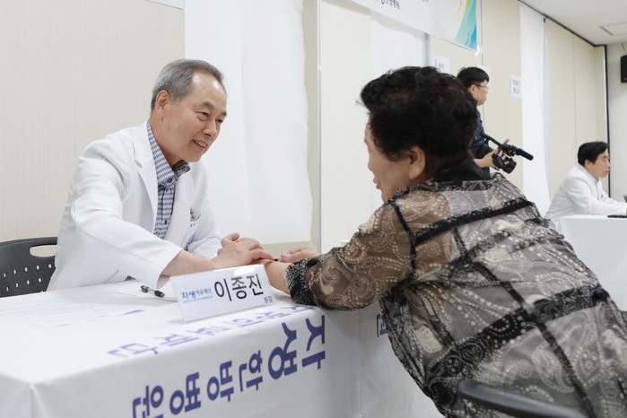 또한 이날 부천자생한방병원은 업무협약 이행의 첫 걸음으로 독거노인 200여명을 대상으로 한방 의료봉사를 실시했다. 개인별 맞춤형 건강 상담과 함께 증상에 따른 침 치료가 이뤄졌다. 또한 치료 이후 지속적으로 건강을 돌볼 수 있도록 한약과 한방 파스도 처방돼 노인들의 큰 호응을 얻었다.