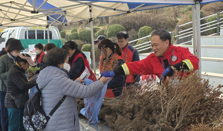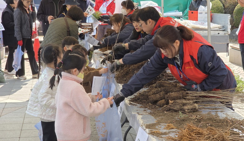 올해로 13회째를 맞은 이번 행사에서는 꽃이 아름다운 산수유나무와 산벚나무를 비롯해 약재로 활용되는 헛개나무, 오갈피나무, 음나무 등 10개 수종 3,000여 그루의 나무를 시민들에게 나눠줬다.
